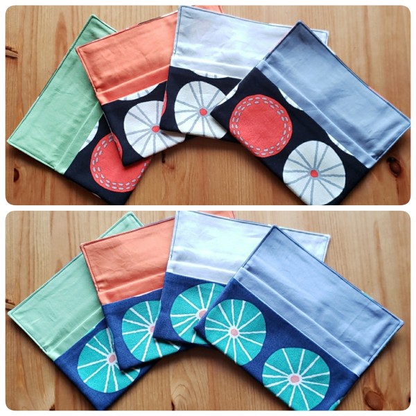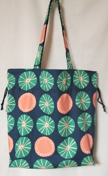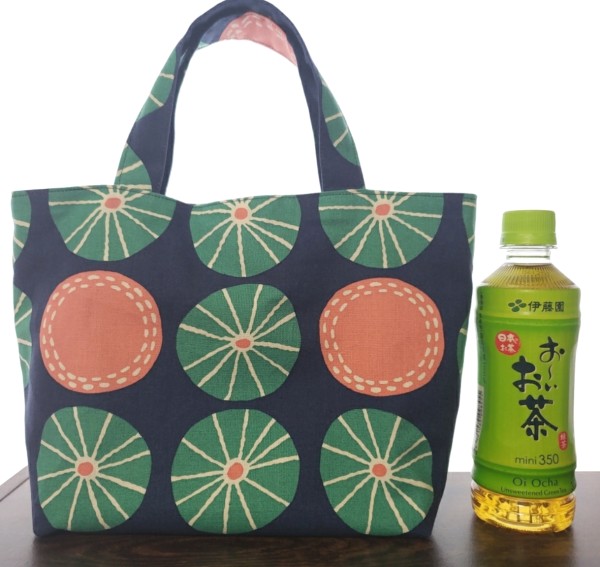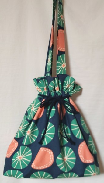 北欧調の布のようですが私には和風にも感じたので、巾着バッグとミニトートバッグを作ってみました。残った布で横長のマルチケースも作りました。
