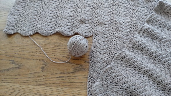 前身頃〜肩部分を一枚で編み、背中部分を編み足し