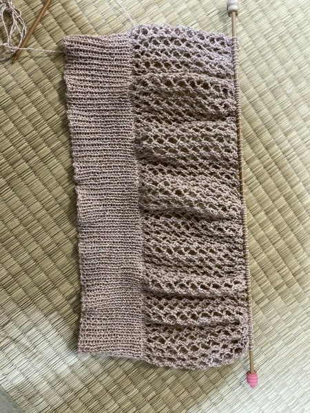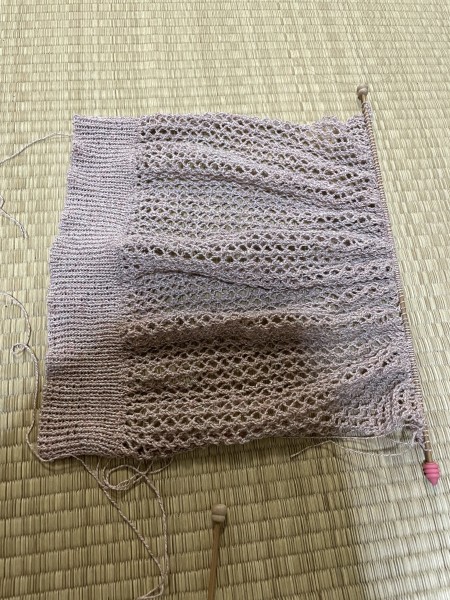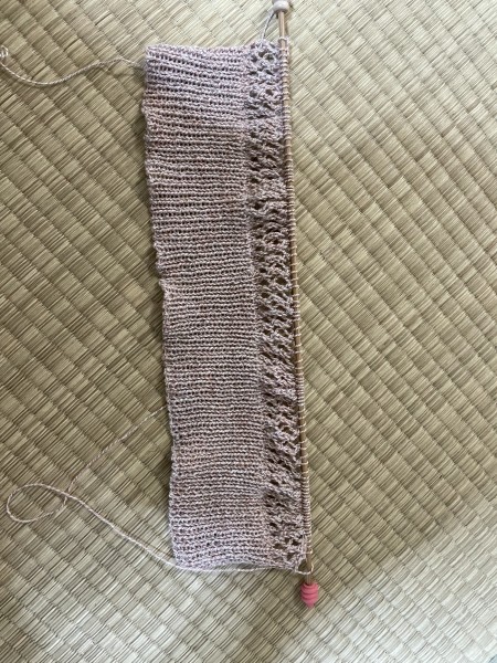 このあたりから透かし模様に苦戦して編んで解いての繰り返し