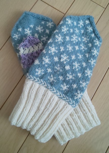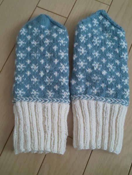 初めてのミトン、そして模様編み。どうしても編んで見たく去年購入してあったキットのもの。