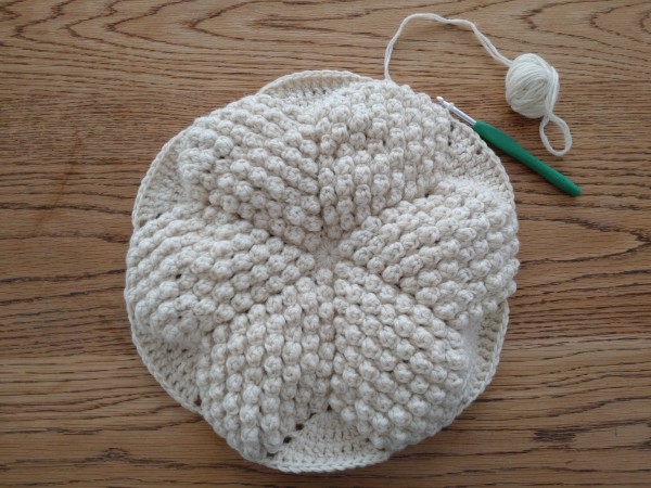 編もうと思っていたカーデガンを諦めて、以前印刷していたあむゆーずさんの編み図で、パップコーンの花模様のバッグを編むことにします