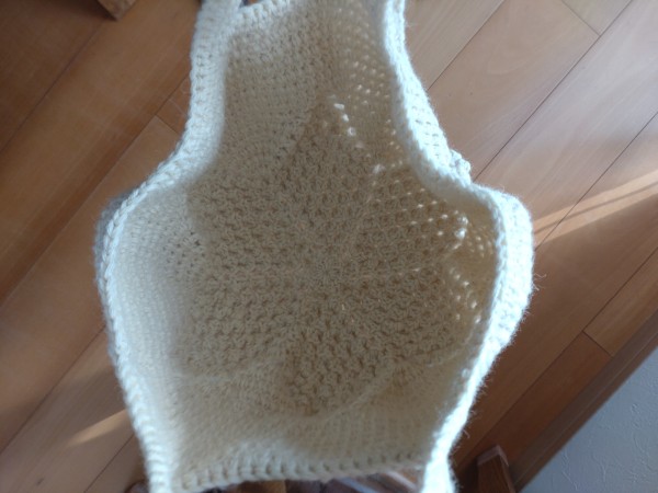 | 年末にまとめ買いしてた純毛の毛糸でざっくりとしたカーデガンを編むつもりでしたが足りなさそうなので、バッグに変更。 あむゆーずさんの花模様のバッグの編み図を使ってトートバッグを編みました。 底の部分がパップコーン編みで花模様になっててかわいいです。 編み図の通りだとかなり大きかったので(この写真でも中にバスタオル2枚入ってます) 花模様で増やす部分を少なくして、縁と持ち手を細編みに変えました。 私の好み的には もう少し高さが有って、開口部が広がらないように少し減らしたら良かったかなぁ… 気が向いたら また、編み直すかも(^_^;) 取り敢えず完成です。 この糸、15玉有って、7玉使いました。 あと8玉…う〜ん何にしようwww |