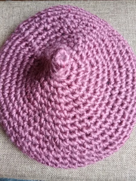 8ミリ針で編む、太糸のとんがり帽子 糸が太いとあっという間に完成ですネ