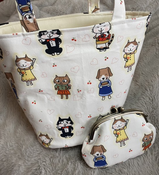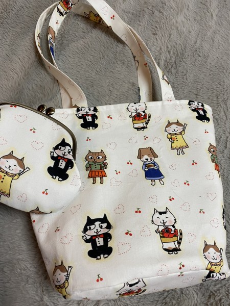 先日のオリジナル布がま口とお揃いでトートバック作りました。