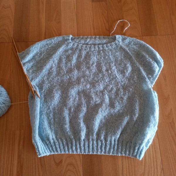 右袖が編めたので、左袖を編む準備をしています。ただのメリヤス編みなので、すぐに出来ると思います。