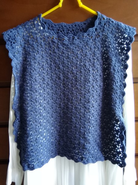 真っ直ぐ編みなので縦横の増減がしやすいデザイン、襟ぐりの調整もしやすい模様でした