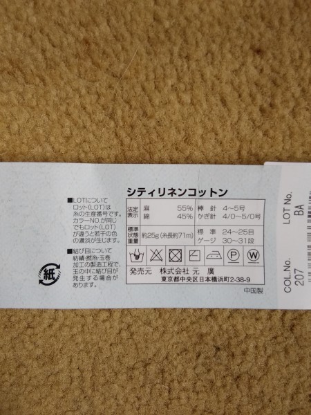 糸は手芸店のバーゲン糸、本のような黄色が可愛いけど、この色しか玉数が揃いませんでした