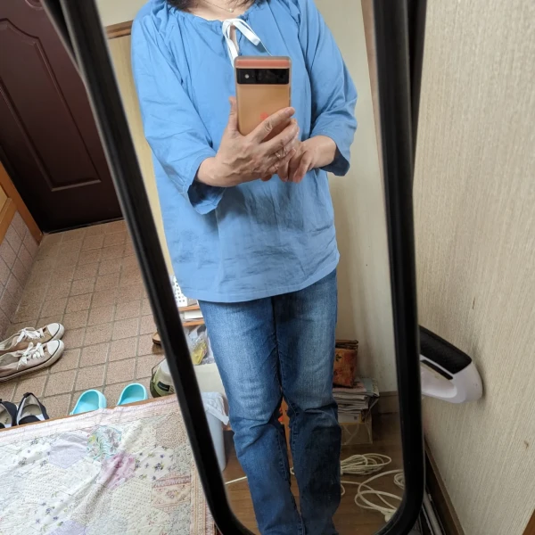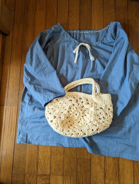 ホビーラホビーレのパターンを使ってスモックブラウスを作りました。襟のバイアステープをつけるのが難しかったです