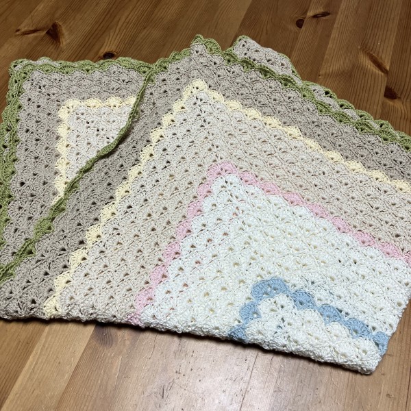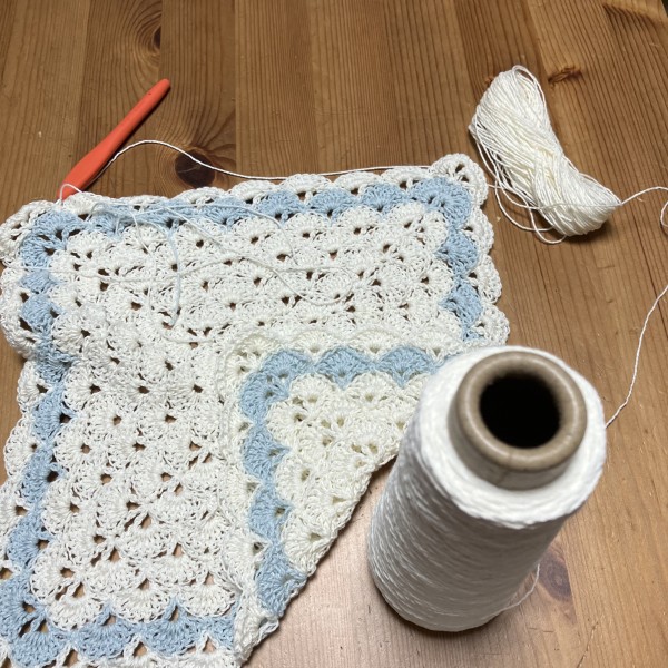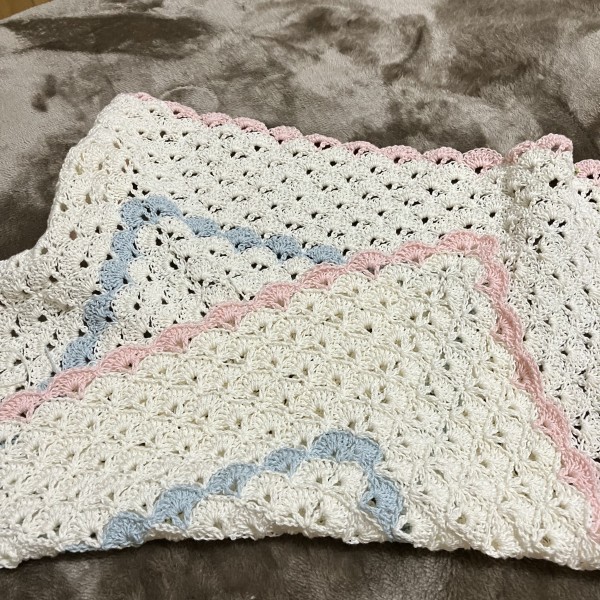 ベビーブランケット作ってなかったー!ってなって急遽作成中です。 差し色ピンクです(5/26)