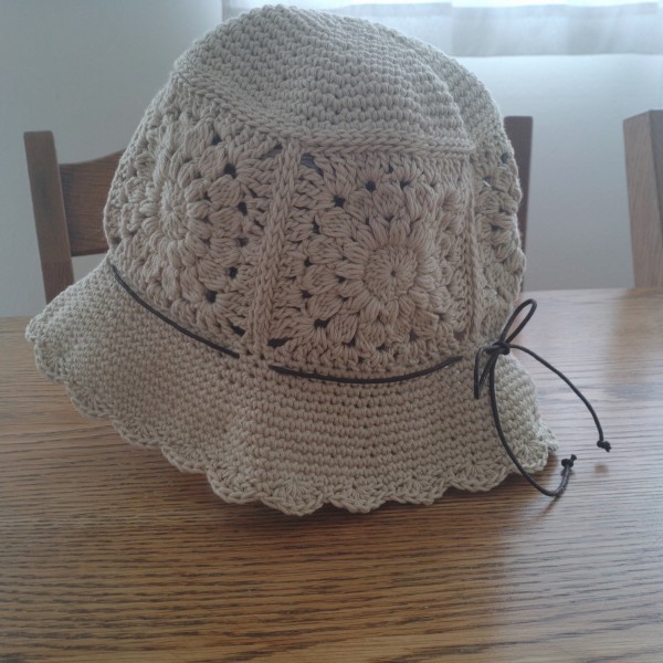 | セリアのキナキナリで子供用の帽子を編みました。 この糸は編みやすく、細いけどハリがあってサラッとした手触りも良い!お気に入りの糸になりました。 最初バッグにしようかとモチーフを編み始めたんだけど、一枚が約10センチ四方、5枚繋げたら調度50センチ程なので、子供の帽子にしてもいいかなぁ…と路線変更しました(^_^;) 編み図も無かったので、繫げてから電卓片手に目数を調整して…適当に始めた割にいい感じにできました♪ 大きさはコードを絞ってある適度調整できるように。 一色のモチーフにしたので、少し大人っぽいシンプルな感じになりましたよ。 |