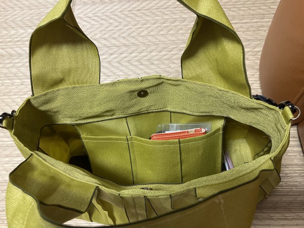 畳のへりを使って、YouTubeを参考にバッグを作成。