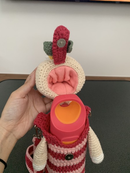 娘の水筒ケースを編みました。