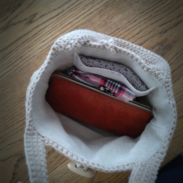 | 初めて買ってみたカポック綿という天然の極太糸を使ってモチーフ編みのトートバッグを編みました。 四方モチーフ編みにしようかと思ったけどマチと底は中長編みの筋編みで編んでモチーフと繋げました。 見た目よりマチがたっぷりある分 割りと入ります。 ざっくりしてるので、頑張って内布もつけました。 |