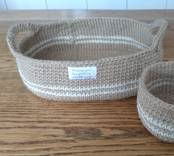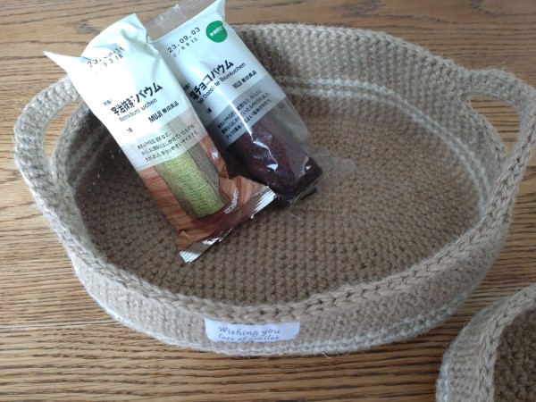 残りの糸でおまけにお揃いで小さめのカゴも着けて渡します。