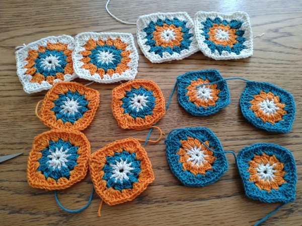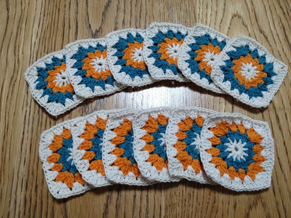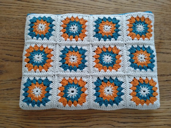 | 娘のリクエストでノートパソコンのカバーを編みました。 青とオレンジのモチーフをと言われて、私が普段使わないような色味だけど、編んでみたらいい感じ♪ モチーフ編みは色合わせが難しいけど、意外な組み合わせでもバランス良かったり、面白いです。 元々使っていた100均のソフトケースに被せてファスナー部分でまつり縫いしたので、フカフカでちゃんと保護もできるし、可愛い!と娘も気に入ってくれました(*^^*) |