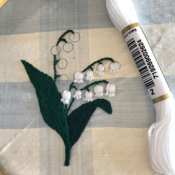 刺し始めたのが昼頃で、オフ白(Anchor25番のNo.2)が足りるかどうか心配でしたが、最後の一束在庫を持っていました。