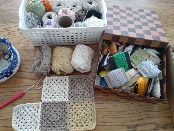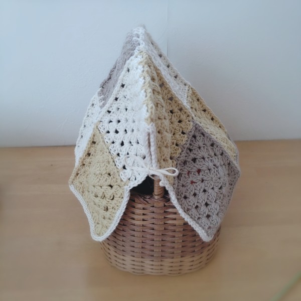 | リビングのペンやメモ用紙などの文房具を入れてるかごの上に目隠しでかけるクロスを編みました。 取っ手が付いてるのでリボンで結ぶようにして掛けたらいい感じになりました♪ 最初はコットンの細々したあまり糸で色を変えたグラニースクエアを何枚も編もうと思ったんだけど、単色✕3色を4枚づつ編んで繋げました。 今回は糸処理を簡単に済ませるために編みながらつなげるという方法を初めてしてみました! なんて楽ちん! モチーフ編みは楽しい(*^^*) |