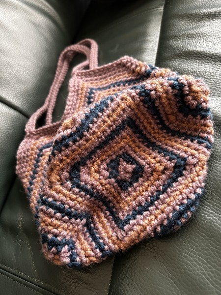 | 糸使用量 | モーブ2玉、ショコラ1玉、デニムブルー1玉 |