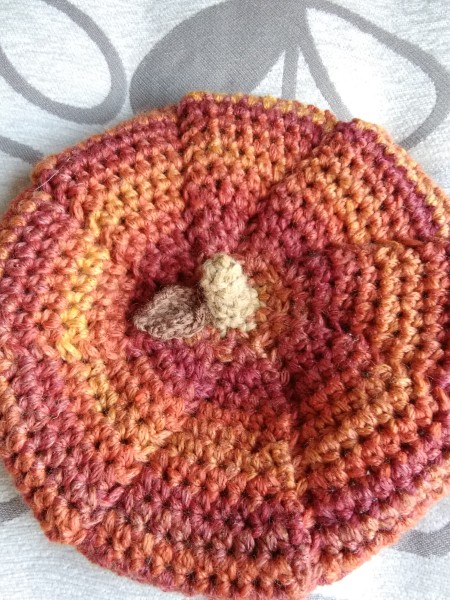編み方は、YouTubeの「ハンドメイドきよちゃん」のカボチャ帽子を参考にしました