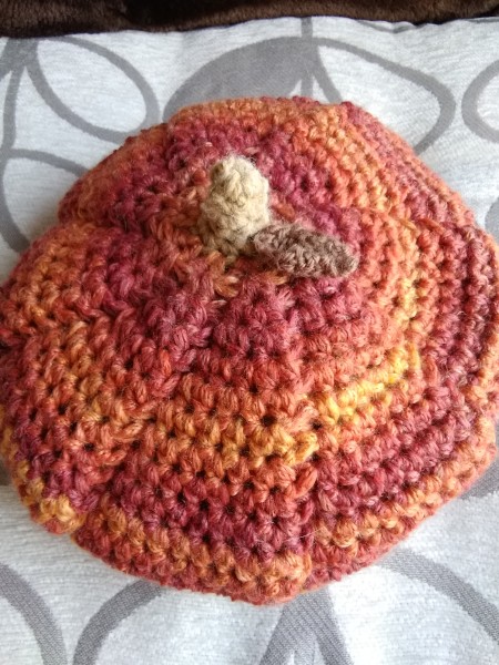 急に思い立ち、姪の子供にカボチャ帽子を編んでみました