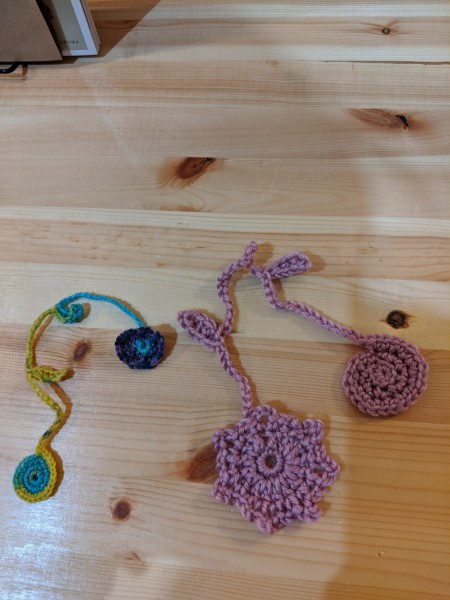 本やネットで探した編み図を参考に作っています。主にかぎ針での編み物メイン。キャラクターをモチーフに色合わせをすることもあります。中学生の頃に祖母から教わり、コロナ禍をきっかけに独学でメキメキと腕を上げまくってる最中です。