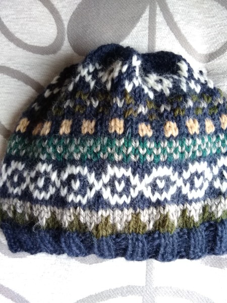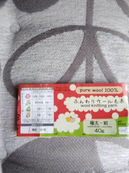 今年も100円ショップで新しい糸を買ってしまった、、、 スペースを少しでも広げようと、残り糸の消費活動 1玉残っていた極太を帽子に。 極太なので、あっという間に完成 昔のダイソーの糸、ウール100で1玉40gです