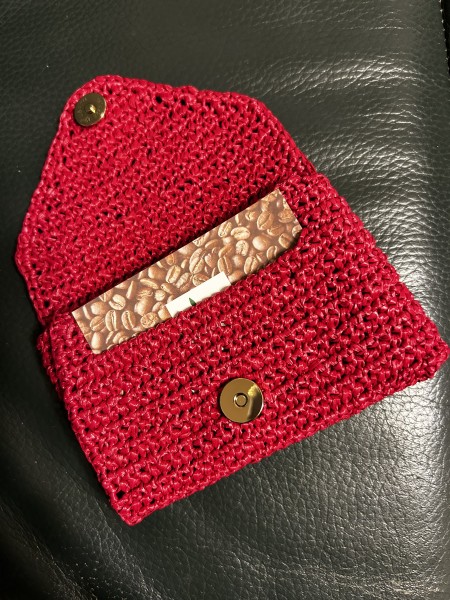 表側の横開きの大きな開け口からはお札やカード、裏側の縦開きからは小銭を入れられる作りになっています。