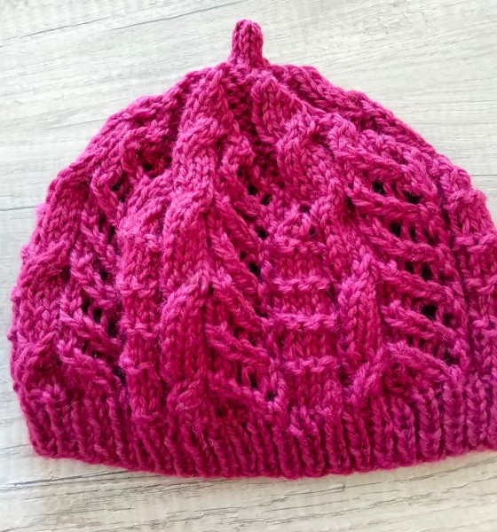 葉模様の帽子…少ない糸で簡単に編める帽子、気に入った編み図の一つ