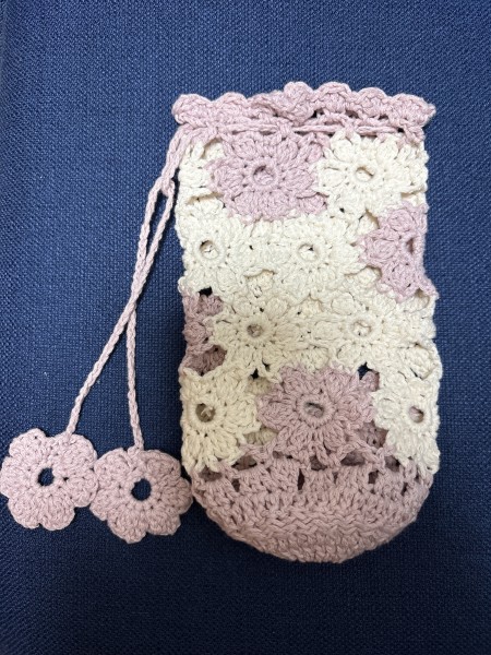 あまり糸でペットボトルホルダーを作りました。針の号数を大きくしたので、少しゆるめになりました。 (完成日がわからないくらいだいぶ前の作品です。。)