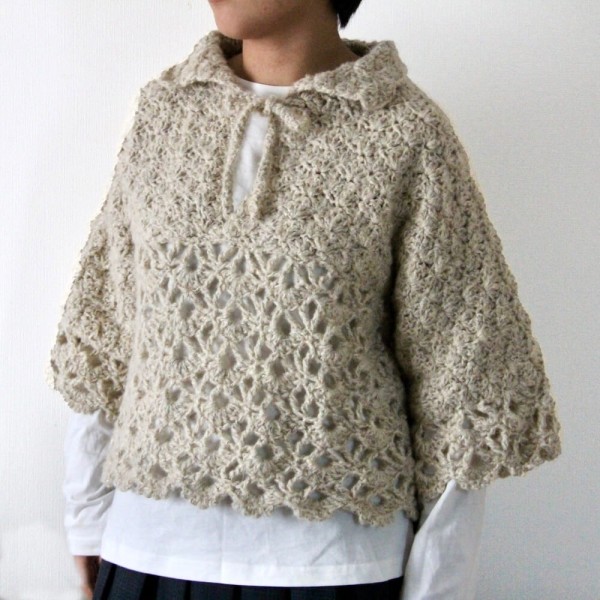 襟のついたレーシーなかぎ針編みのプルオーバーです。 かぎ針編みでザグザグ編めます。 簡単に編めるよう四角いパターンにしました。 編み方動画にしてあります。 https://youtu.be/gGiledEQle0 ぜひご覧ください。