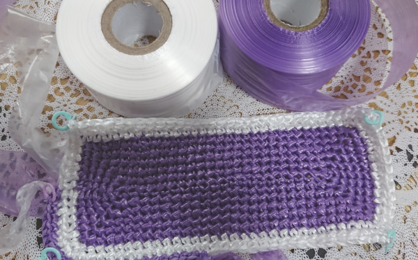 リバーシブル編みのアクリルエコタワシです。 柔らかい感じに仕上がりました。