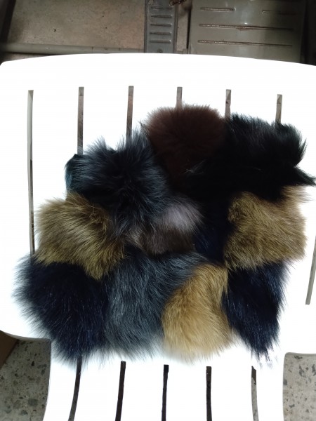 色々な大きさ、色々な色の毛皮を専用のミシンで繋いでバッグを作ります