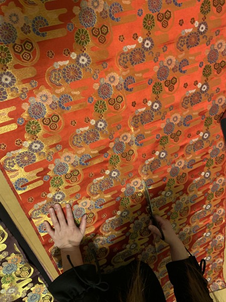 知り合いのお店で使う暖簾、壁掛け、目隠し。 平安時代をイメージした感じと言うことで生地選びをしました。