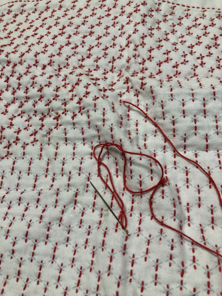 刺し子 5枚目 重ね枡刺し 外枠を綺麗に見せられるように試行錯誤。