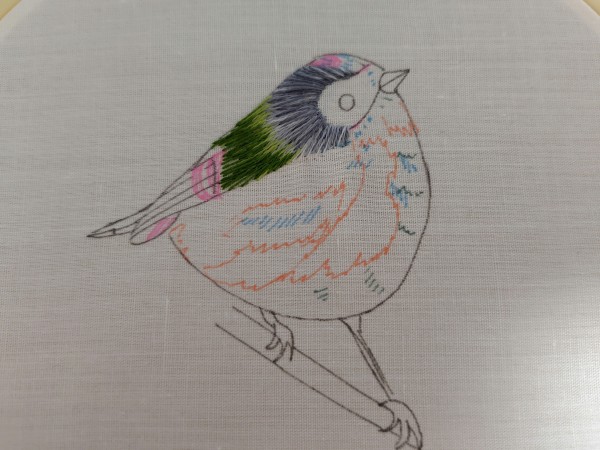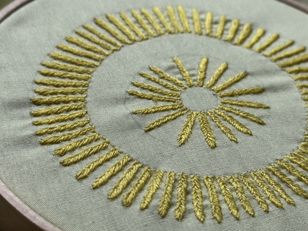 「ケイトウ」の質感を出すため、ポルトギースボーダーステッチに挑戦しました。紙でもなんとか刺せました。