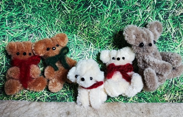 モールのテディベア。 座っている時身長約10cm。 立っている時約15cm。 モールなので色々ポーズを変えて遊べました。 愛嬌あるくまちゃんがうまれました(^o^)