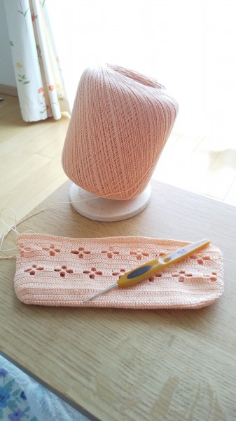 コットンフレンド2019年春号スマホホルダーのレシピより作りました。 大きめのスマホなので、少し大きくしました。