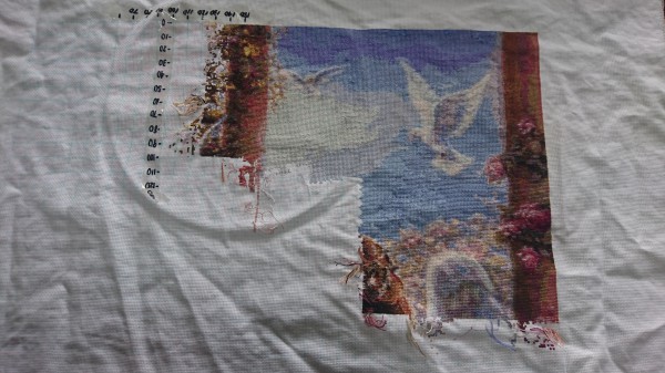 9/28ページ目です。近所の画家さんの代表作を、チクチクしています。