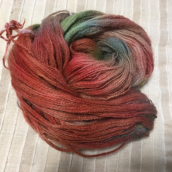 なちゅらるはる久し振りの手染め糸です。 染料は化学染料です。 毛足の短いモヘア で、編んだら楽しそう!と、妄想してます。