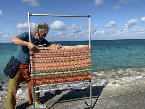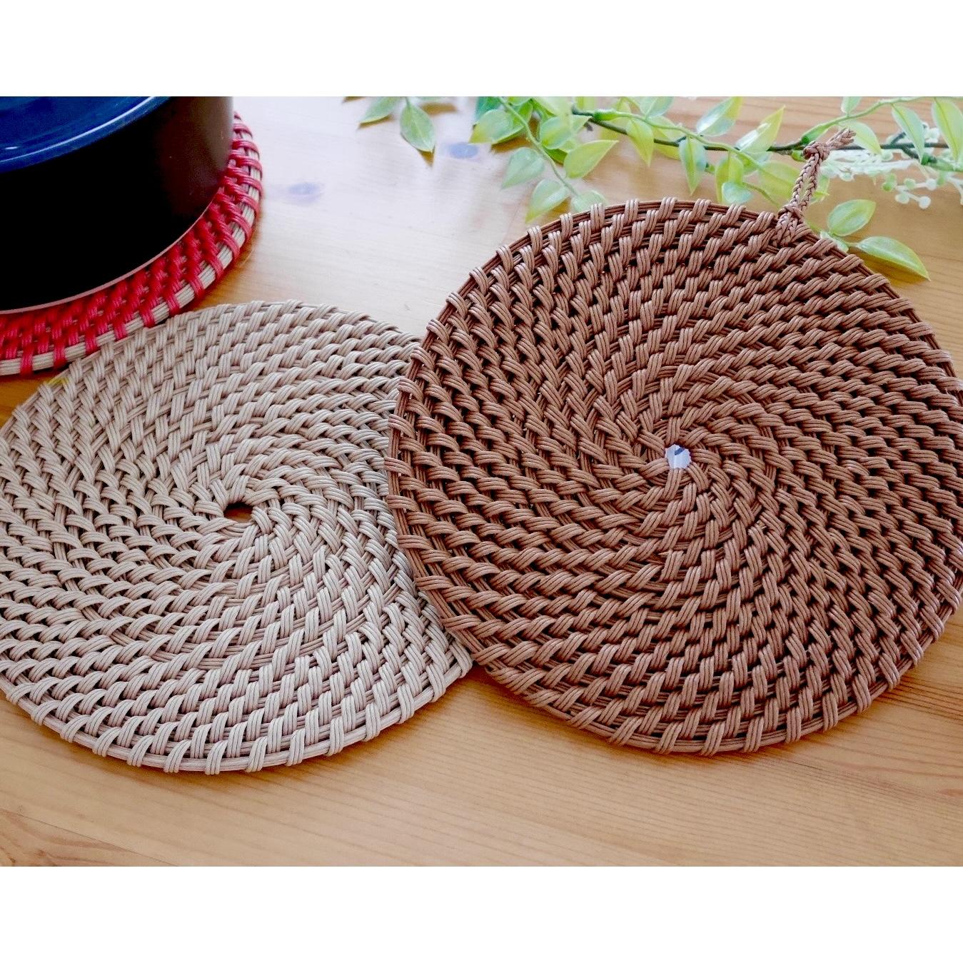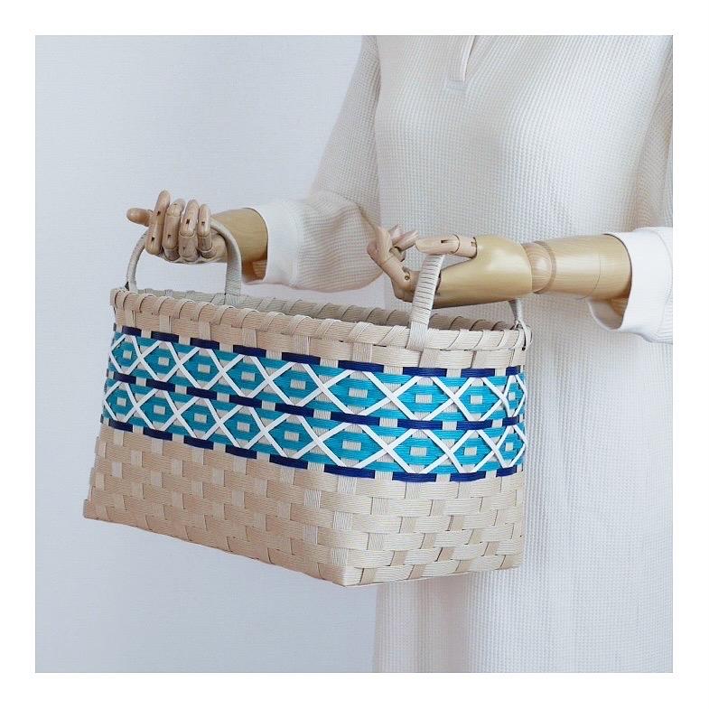 日本輪織り協会代表ダンボール板の簡単織り機<おりりん®>を使い、両面続けて輪っかの織地を作ってから 底や持ち手をカギ針編みで仕上げました。裏地もついて、使い勝手抜群の麻ひもバッグです。