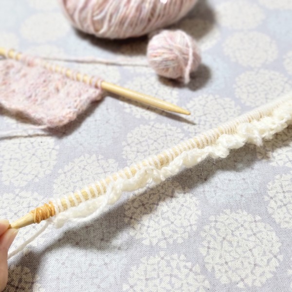 編み出し糸で3段編むところまでを