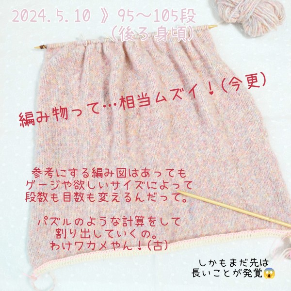 途中、後ろ身頃を編んでいたため