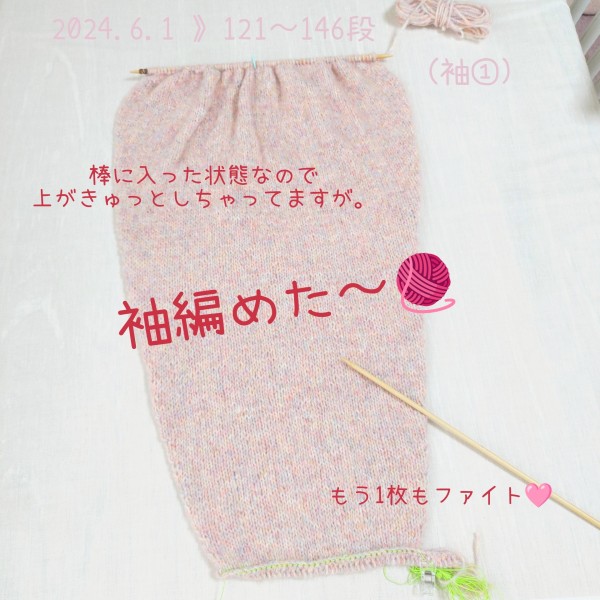 このあと2枚目の袖も連日編みました。