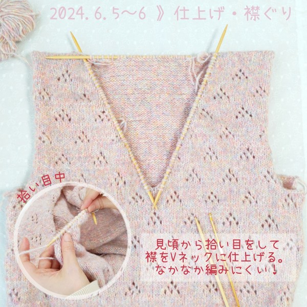 前身頃のVネックに入ったところです。