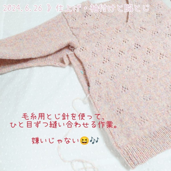袖付けと脇とじ。