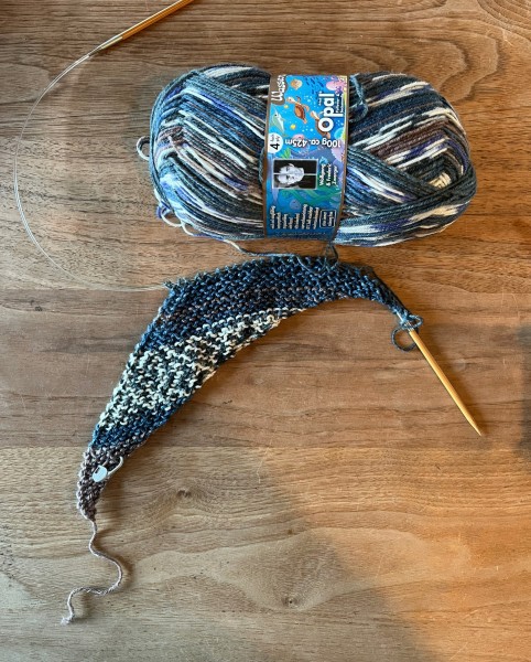 仕上げの段階になって、最後の段を編みすぎていたことに気づき編み戻し。早く仕上げたいけどそろそろ用事の時間。経験上ここで焦ると色々やらかすので残りはあとでゆっくり仕上げます。
