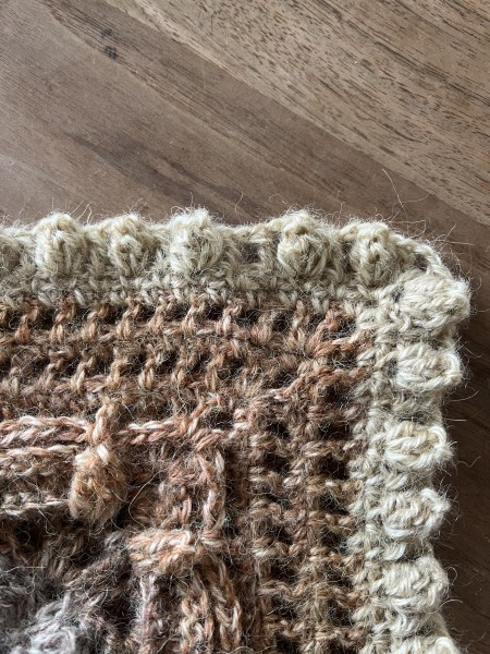 ここまでにもちょこちょこ編み間違いして、その度にちょこちょこほどいてます。アルパカミックスロール、もけもけしているので糸同士が絡まってほどく時けっこう大変です。
