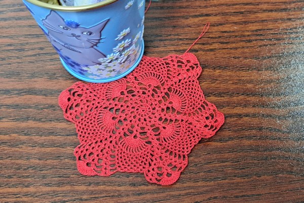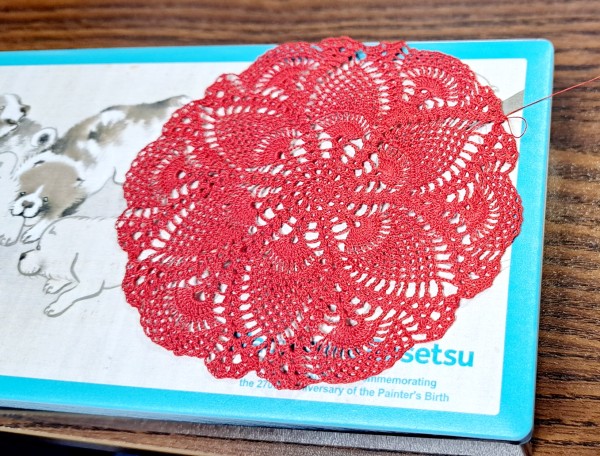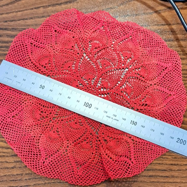| 縫い糸で編む、レース編みドイリー 直径約20cmくらいでの完成。 ミシン糸①、ミソン糸②、手縫い糸と、3種類の糸でできています。 編む際は柔らかさが糸によって大きく違いましたが、編みあがってみると面の柔らかさや触り心地に差はなかったです。 新しい体験でとても面白かった。 |