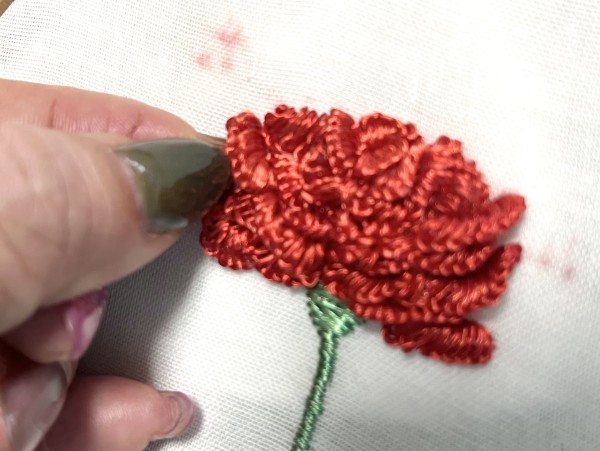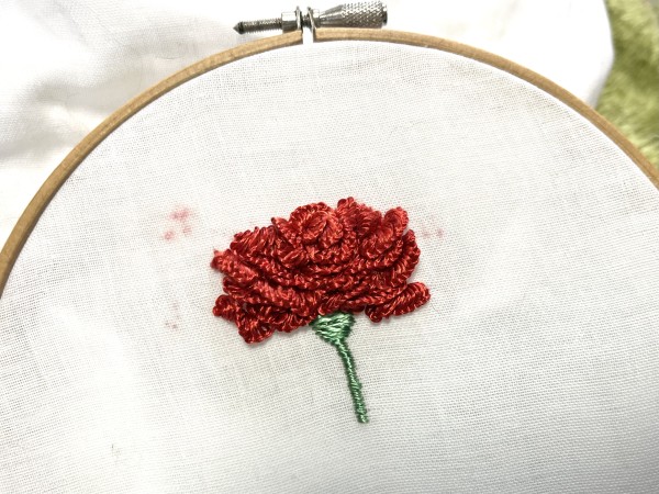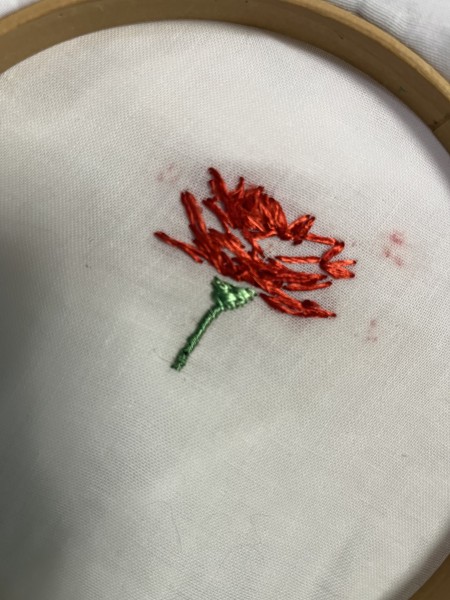 | 久しぶりなので、練習。 無事に(?)できた。 マイクロファイバー糸なので ちょっと離れたところに糸の端を止めておいた跡が付いてしまった。 色落ちではなくて、生地の繊維の中に意図の繊維が潜り込んでる。 やっぱり仮で玉結びを作る方式に戻そうと思う。 |