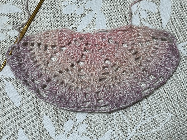 この一週間ほど、3歩進んで2歩下がるを3回繰り返した後さらに3歩下がる、みたいに編んだり解いたりを繰り返していました(^_^;)